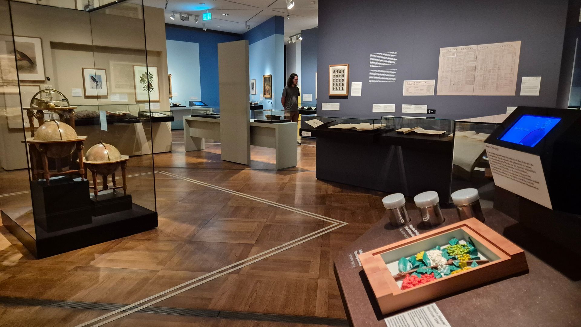 „Aufklärung“ ausstellen, das ist schon ein ambitioniertes Unterfangen. Da grübelt der halbnackte Herakles über die Entscheidung zwischen Ausschweifung und Disziplin. An anderer Stelle geht es um Gleichheit der Menschen, die Rechtmäßigkeit der Sklaverei oder die Erforschung fremder Kulturen und Völker. Objekte erzählen Geschichten und machen so selbst spröde Themen anschaulich - auch für Menschen mit Handicap. Sie finden an vielen Stellen Informationsstationen mit Inhalten zum Tasten, Riechen, Hören. Dort gibt es auch Angebote in Deutscher Gebärdensprache, in Blindenschrift, mit erhabenen Buchstaben und in Einfacher Sprache. Blinde navigieren über das taktile Leitsystem am Boden durch das Vitrinen-Labyrinth. Ganz praktisch: An den Tischen vorne eine Klemmvorrichtung für den Blindenstock. So sind beide Hände frei zum Tasten.